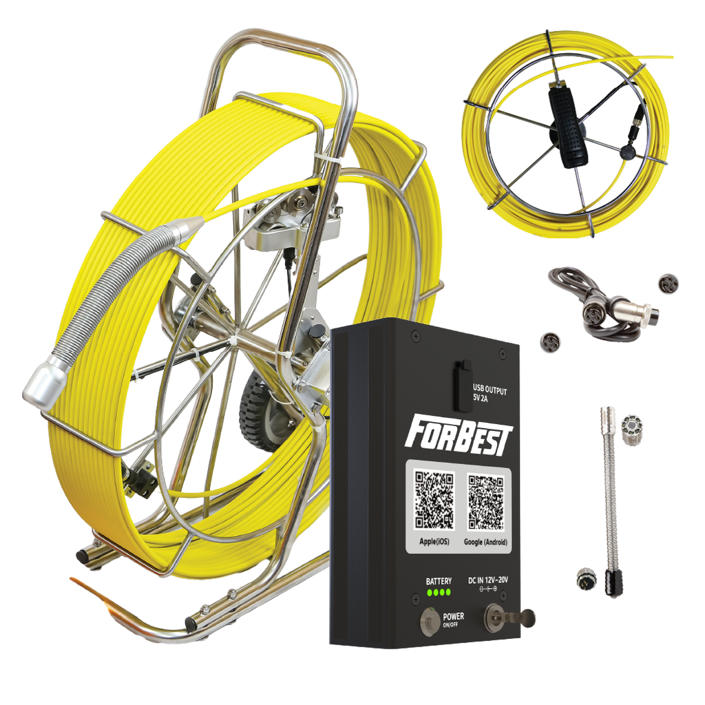 The Forbest Advanced package deal pairs our Wi-Fi Box with a long range 200FT system and a P-Tap camera system. Pairing with the C12B P-Trap camera (12mm) and cable, users can scope 100FT in 1-2” P-Traps while the 200FT CHDR-3288TA system is ideal for scoping 4-10” lines. The CHDR-3288TA model features a self leveling camera head, footage counter and 512 Hz Sonde Transmitter, giving you the most assurance when diagnosing an issue. Inspect through wastewater systems, stormwater, pipelines, drains, ducts, etc.